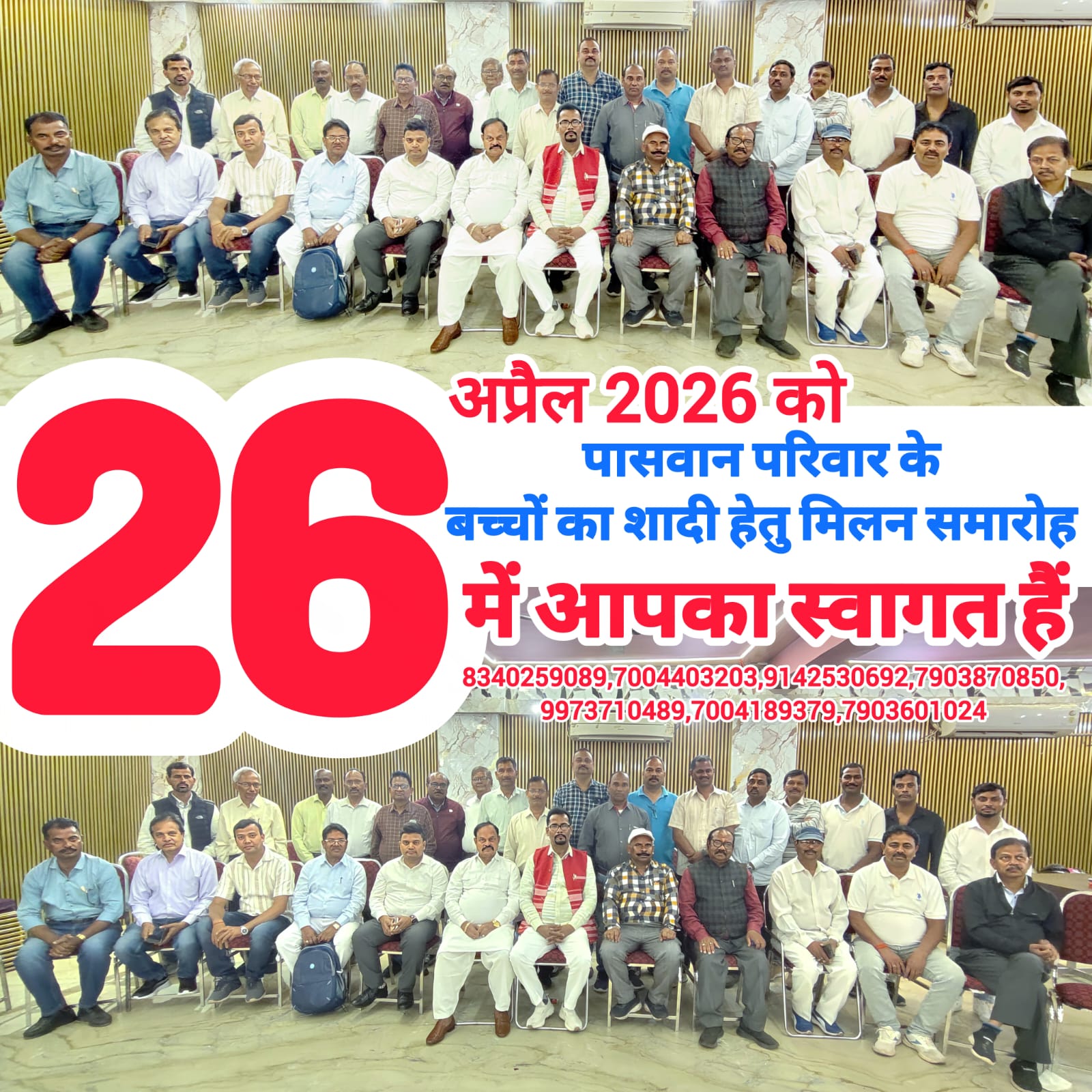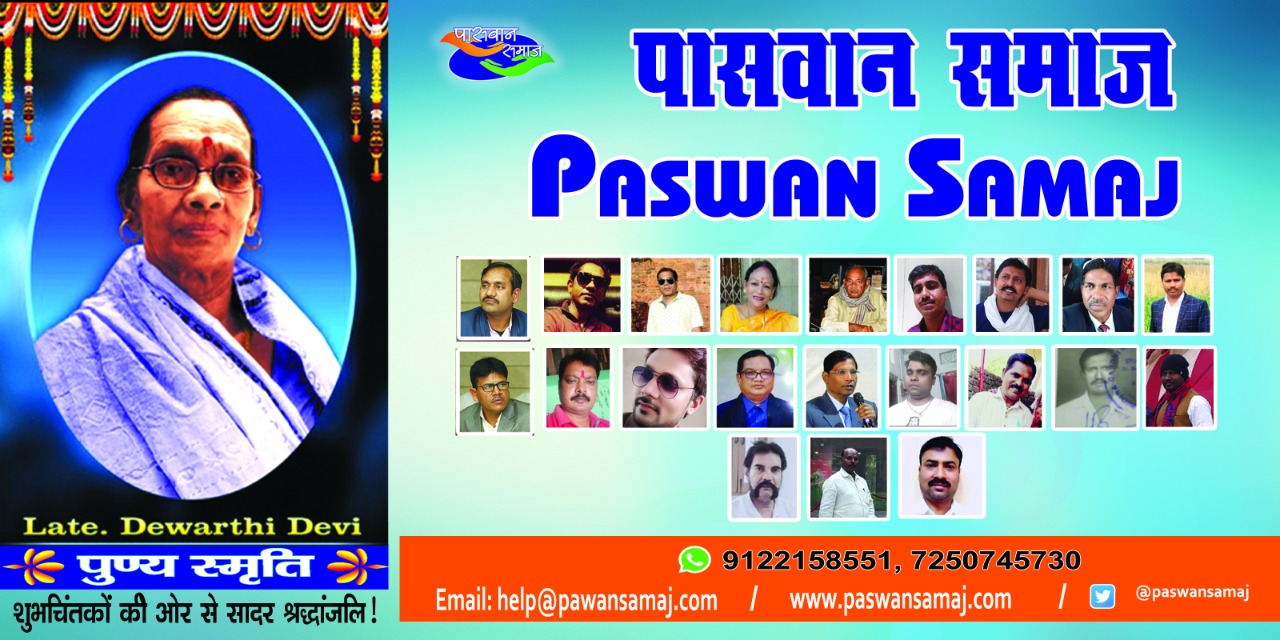 बिश्व के तमाम पासवान परिवार से अनुरोध है .अगर आप के पास थोडा अपने समाज के लिए वक्त हो तो एक छोटा सा विडिओ आप अपने समाज से क्या चाहते है.या समाज को कुछ बताना चाहते है तो को विडिओ बना कर वाट्साप करे| +919122158551 (वाट्साप नंबर)